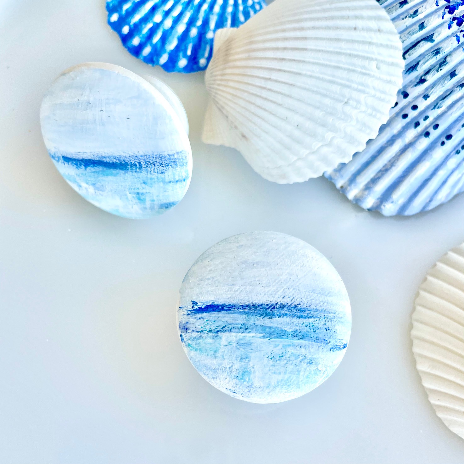 Ocean lover? These lovely cabinet or drawer pulls are hand painted abstract seascapes. A mini work of art. Perfect for a beach house or anyone who loves the sea. Each is hand painted so no two will ever be exactly the same.